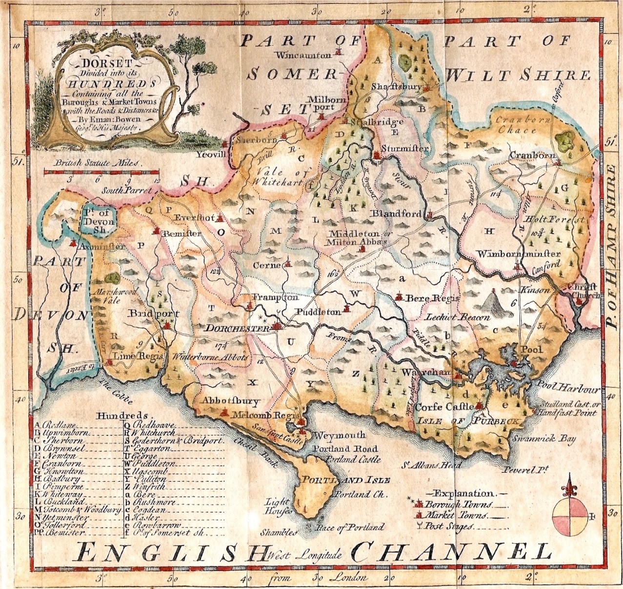 The town grew up south of the monastery and flourished to become the crossroads of Dorset (the London to Exeter road came through here).