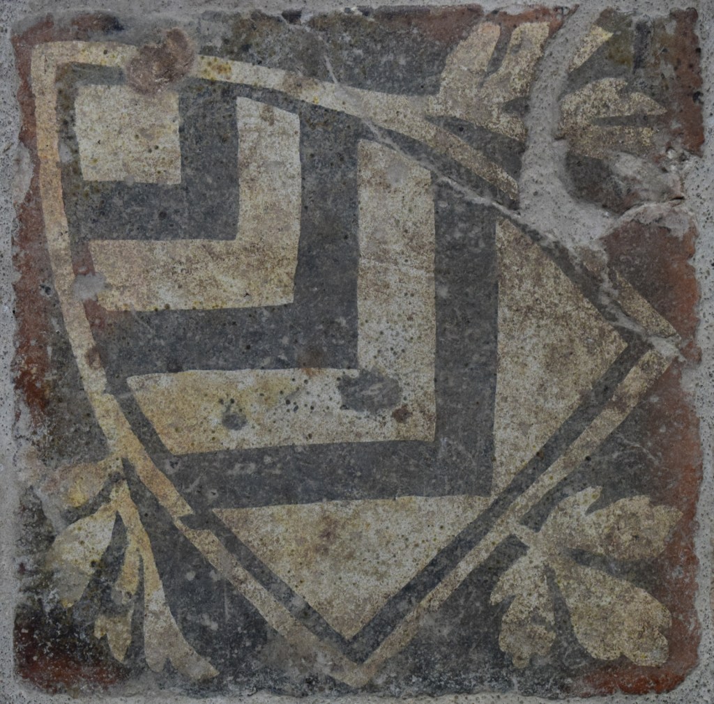 There is good information on the tiles in the book by by A B Emden ‘Medieval Decorated Tiles in Dorset’, Phillimore 1977.